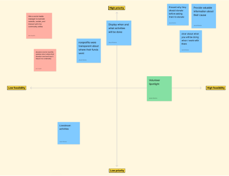 Based on our user research, we compiled a set of ideas of what we want to add to HVFD's website, then used the prioritization matrix to determine which ideas to focus on.